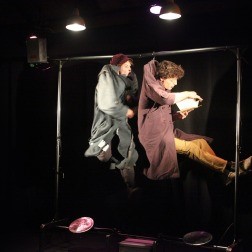 Hang Up, das erste Bühnenprogramm des Freiburgers (CH) Kompanie les Diptik, ist eine absurd komische Poesie, ein Erforschen nach dem Sinn des Seins (oder Nicht-Seins) und hängt wohl irgendwo zwischen Clownerie und Theater.
